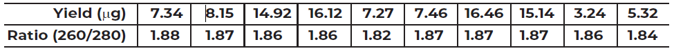 High yield- Recovers 3μg plasmid DNA from 1ml culture
